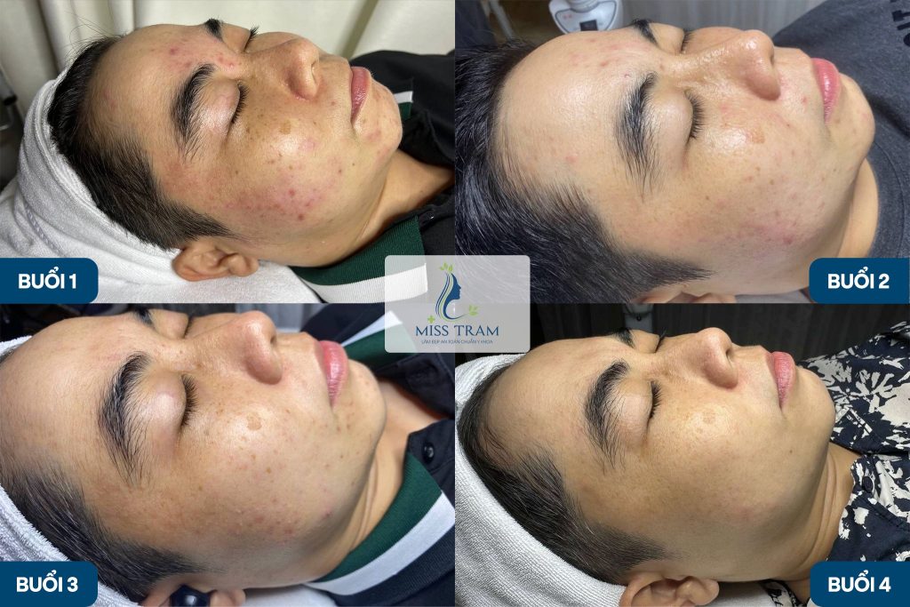 Ví dụ: Anh Lâm mắc phải mụn mạch lươn – tình trạng mụn rất nặng. Với phác đồ điều trị kết hợp thuốc uống bên trong và điều trị ngoài da tại Miss Tram, sau 6 tháng, tình trạng mụn của anh đã hoàn toàn biến mất.
