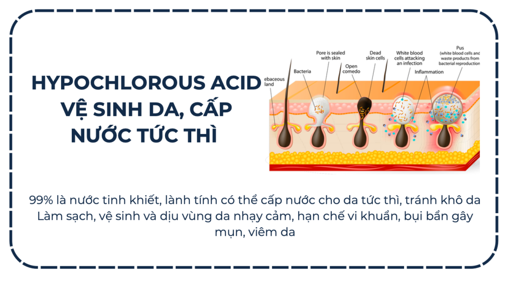 Dung dịch HOCL không chỉ bảo vệ bạn khỏi mối đe dọa tức thời của vi khuẩn, mà còn giúp tăng tốc độ phục hồi sau các quy trình thẩm mỹ hoặc chữa bệnh có tính xâm lấn. Từ đây, bạn có thể tự tin hơn trong các hoạt động hàng ngày, không còn phải lo ngại về khả năng lây nhiễm hay việc tiếp xúc với các bề mặt công cộng.