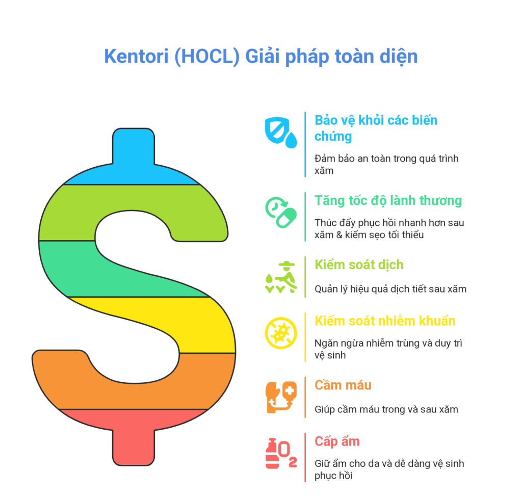 Kentori Hygiene Care với thành phần chính là hypochlorous acid (HOCl) mang lại nhiều lợi ích nổi bật cho khách hàng xăm nghệ thuật: